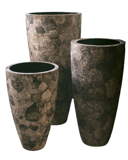 Designer Vasen mit echtem Penshell Muscheln in Natur und Anthra.