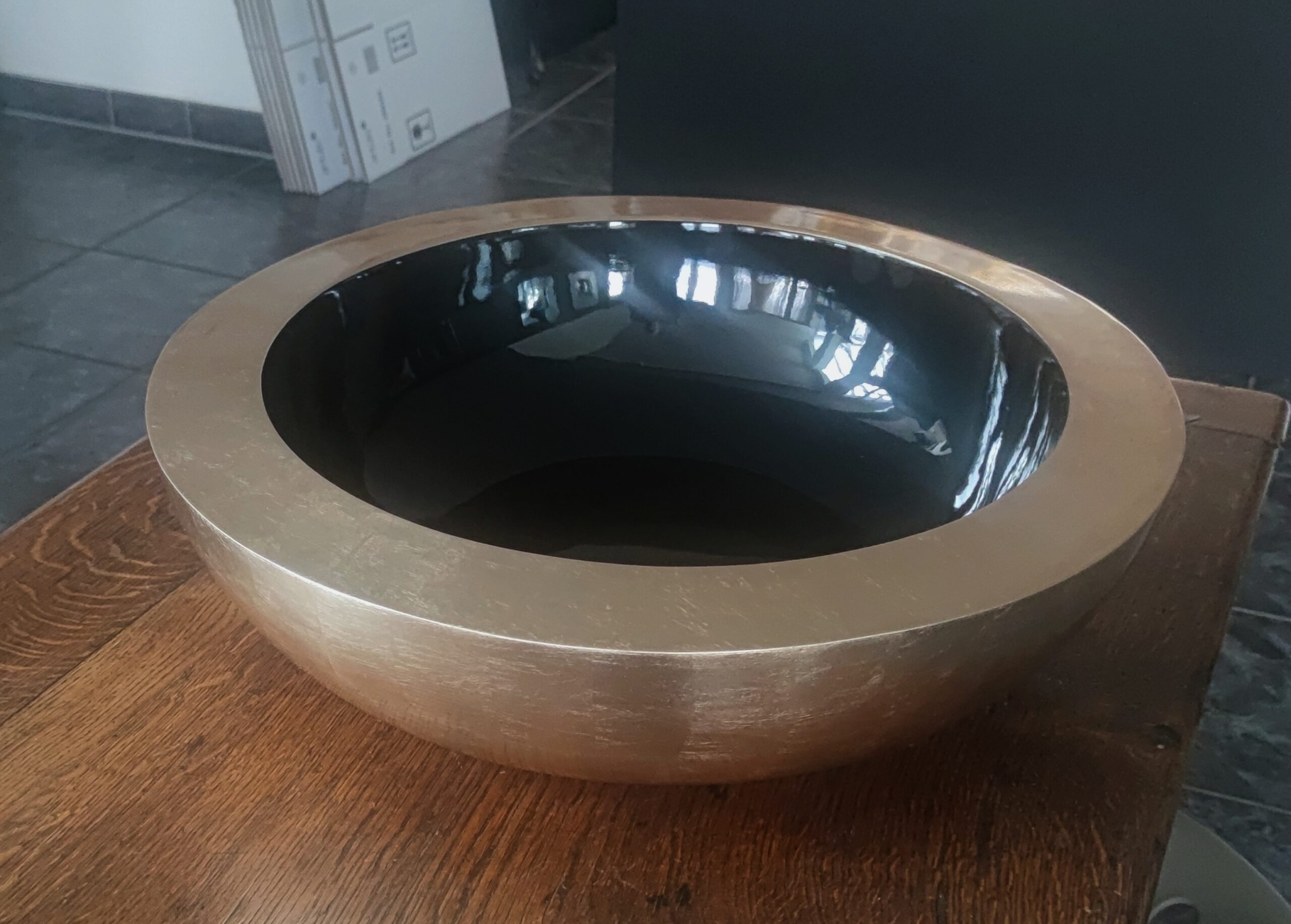 Neu: Blattgold Schalen in llight gold, schwarz und medium silber. Alle Schalen sind 55 x 15 cm.