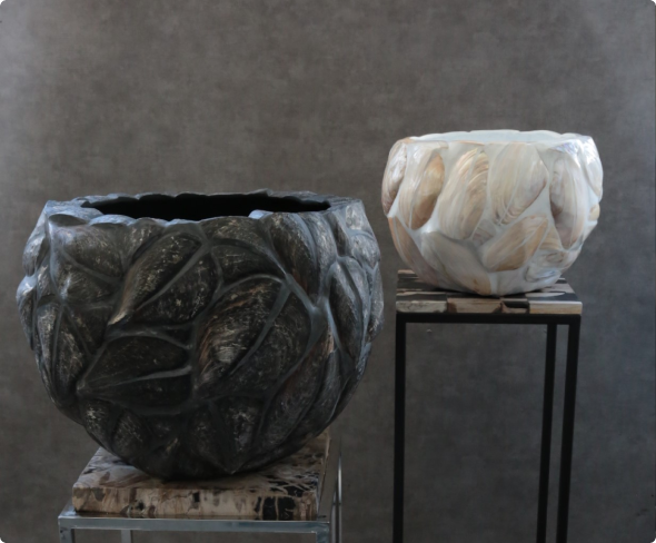 - Handgefertigter dekorativer Blätterpflanztopf, der moderne, luxuriöse und zeitgenössische Interieurs aufwertet.